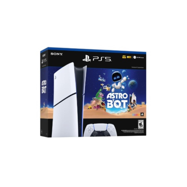 El bundle de la PlayStation 5 Slim Edición Digital con 1TB y el juego Astro Bot incluye la consola, el juego en formato de cupón digital y el controlador inalámbrico DualSense. Este modelo, más compacto que la PS5 original, no tiene unidad de disco, por lo que los juegos se adquieren y descargan exclusivamente de forma digital.