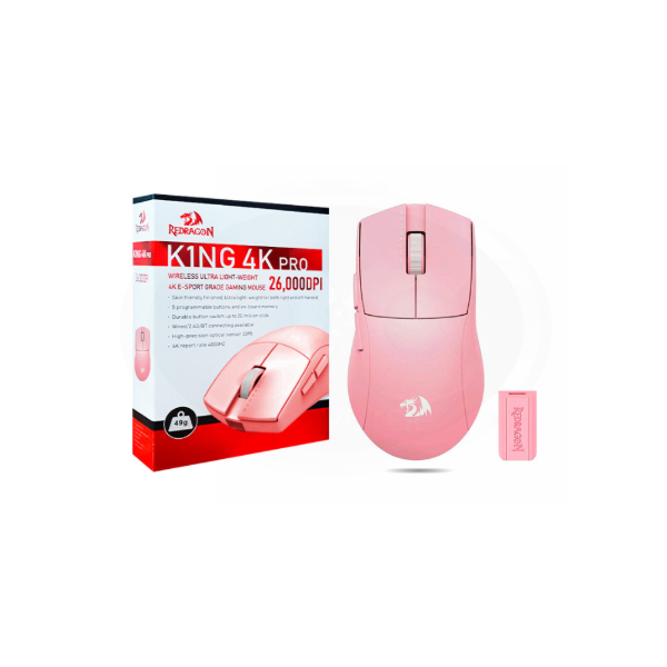 El mouse Redragon K1NG PRO (M916P-PRO-4K) es un periférico ultraligero y de alto rendimiento, diseñado para jugadores de deportes electrónicos que buscan precisión y velocidad. Destaca por su triple conectividad y una alta tasa de sondeo (polling rate) de 4000 Hz en modo inalámbrico de 2,4 GHz.