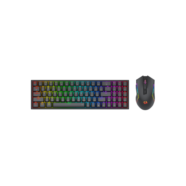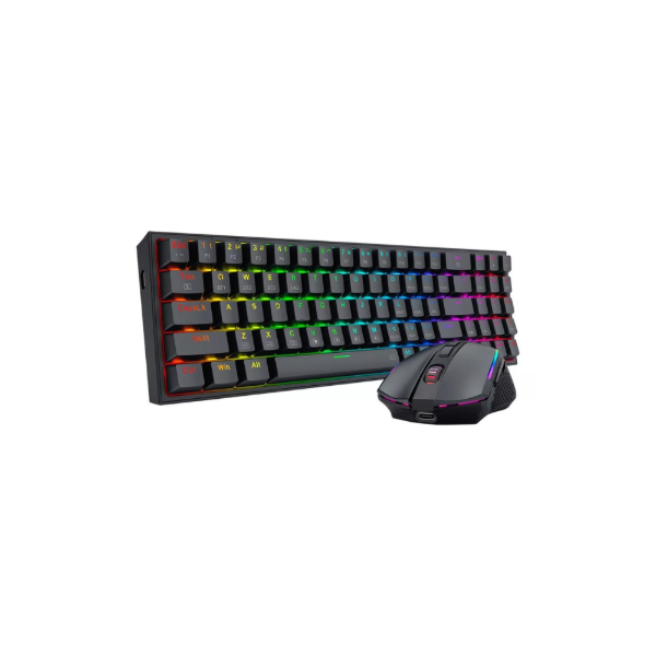 El Kit Redragon S136 2 en 1 Wireless es un combo inalámbrico de teclado y mouse diseñado para videojuegos. Incluye el teclado mecánico Redragon K628 Pollux (o un modelo similar como el K628-RGB-PRO, según el vendedor) y el mouse inalámbrico Redragon Trident M693.