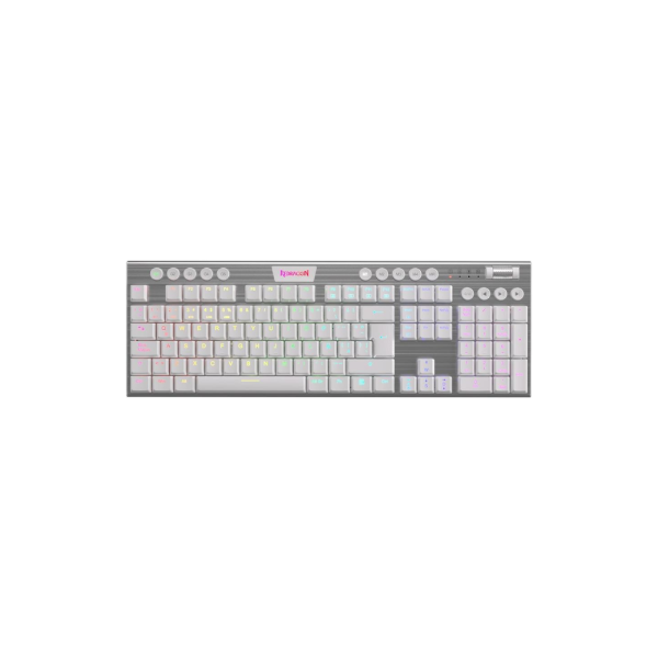 El teclado Redragon K619 Horus FS Black Red Switch Spanish Cableado es un teclado mecánico full-size de perfil ultra bajo, con switches Redragon Red lineales y silenciosos, retroiluminación RGB Chroma personalizable y conexión USB-C cableada y desmontable.