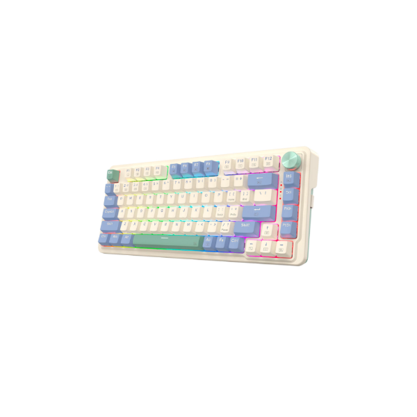 El Teclado Redragon K673CPG-RGB-PRO Ucal Pro EN (Cream, Purple, Green) es un teclado mecánico compacto (75%) con triple conectividad (USB-C, Bluetooth y 2.4 GHz RF), switches lineales Redragon Red y un diseño de montaje tipo gasket para una experiencia de escritura mejorada.